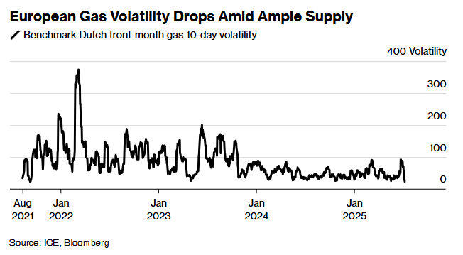 无双策略 供应充足压倒需求增长担忧 欧洲天然气市场波动率降至四年来新低