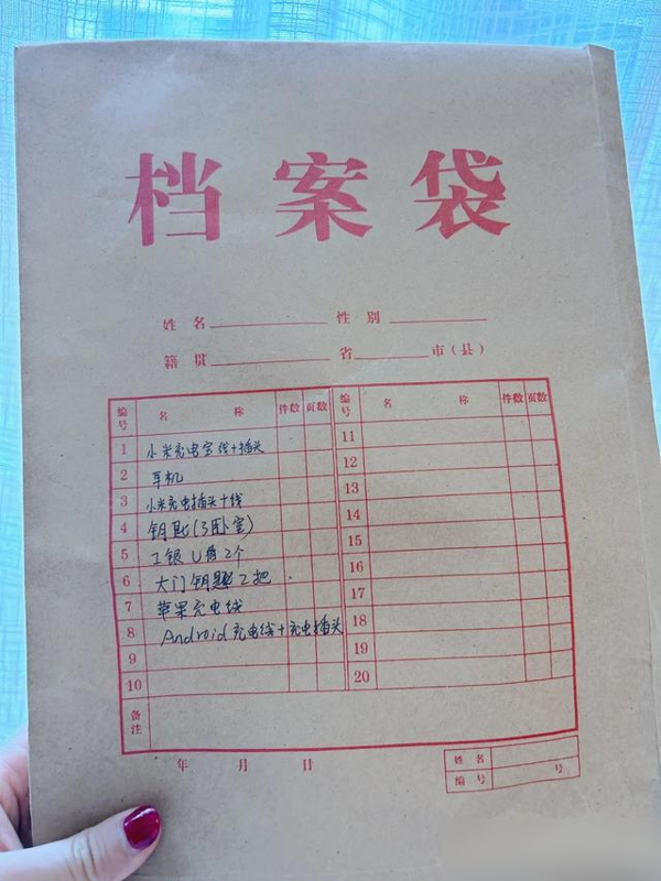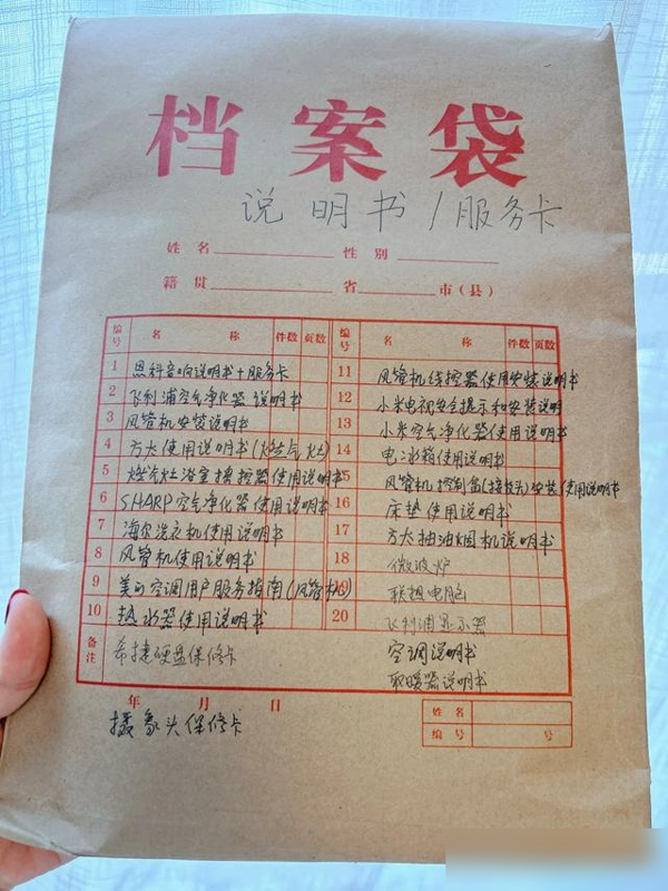 文件袋直接装说明书、发票或数据线,袋子上写清楚内容,要用时随手翻找,比买一堆收纳盒强多了。
